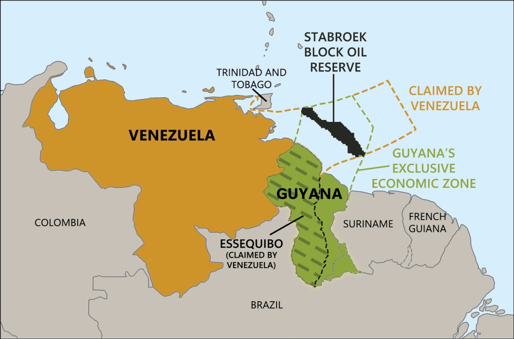 A principios de diciembre del 2023, con la atención del mundo centrada en el genocidio de Gaza, Londres y Washington estuvieron a punto de desencadenar una guerra fronteriza en Sudamérica que podría haber terminado con el establecimiento de una base militar del Comando Sur de Estados Unidos en el territorio de Guyana para proteger los vastos derechos de exploración petrolífera y las posesiones de la ExxonMobil en ese país, y al mismo tiempo para lanzar una guerra para derrocar al gobierno del izquierdista Nicolás Maduro en la vecina Venezuela, que tiene una disputa fronteriza centenaria con Guyana, que se remonta a cuando era una colonia británica y se llamaba Guayana Británica. Esa trampa geopolítica está diseñada para garantizar que la Iniciativa de la Franja y la Ruta de China quede permanentemente bloqueada en toda la región, que es la misión principal declarada del Comando Sur de Estados Unidos y del Departamento de Estado.
